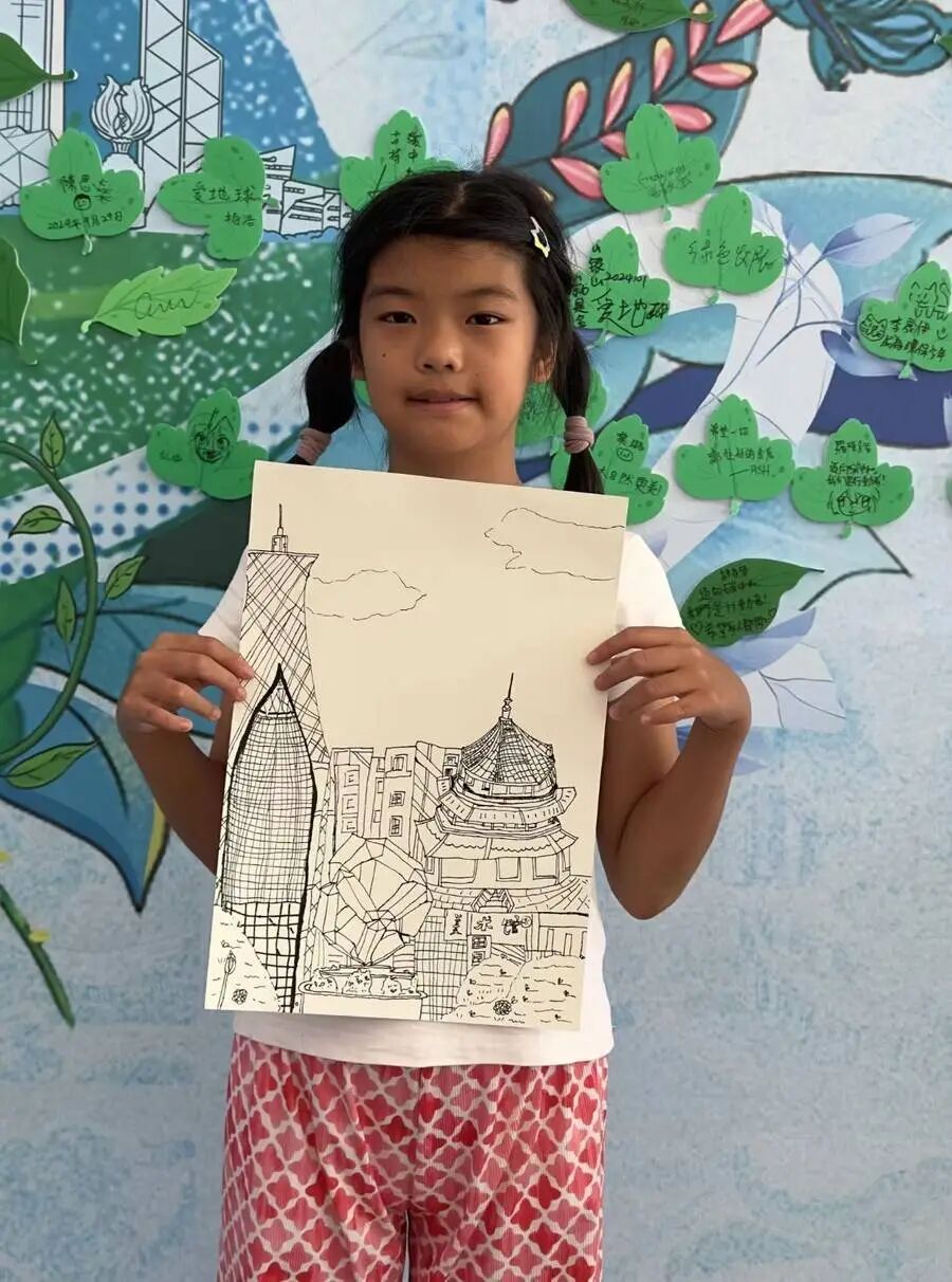 在这最后一天,孩子们将目光投向了他们身边的大湾区城市风景。一座座绿色建筑、一条条清澈的河流、一片片生机勃勃的公园……他们以无数细腻的笔触,将梦想中的低碳城市展现在我们面前,仿佛在告诉我们:通过绿色低碳行动,我们可以让未来的城市更加宜居,人与自然更加和谐。